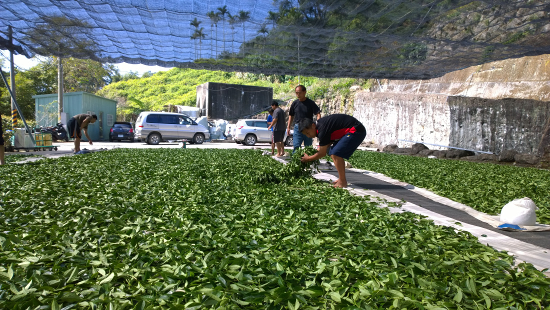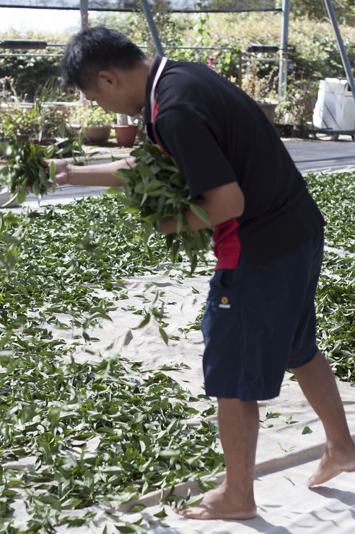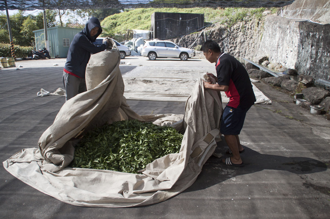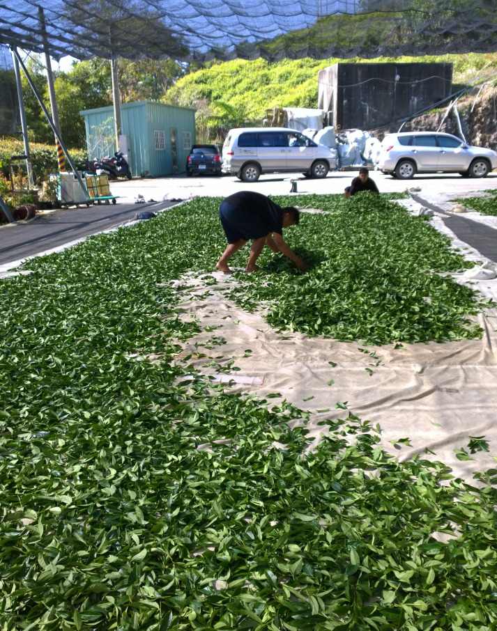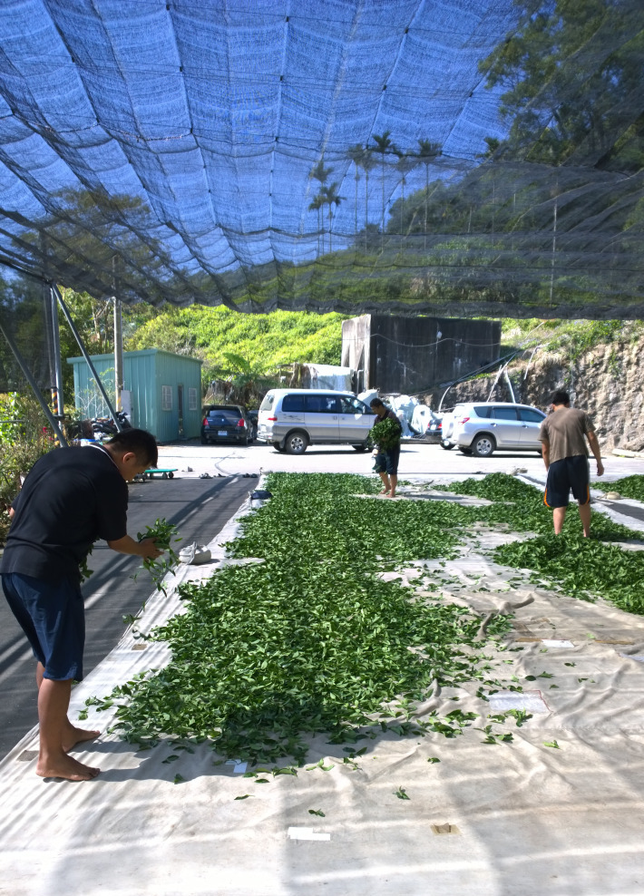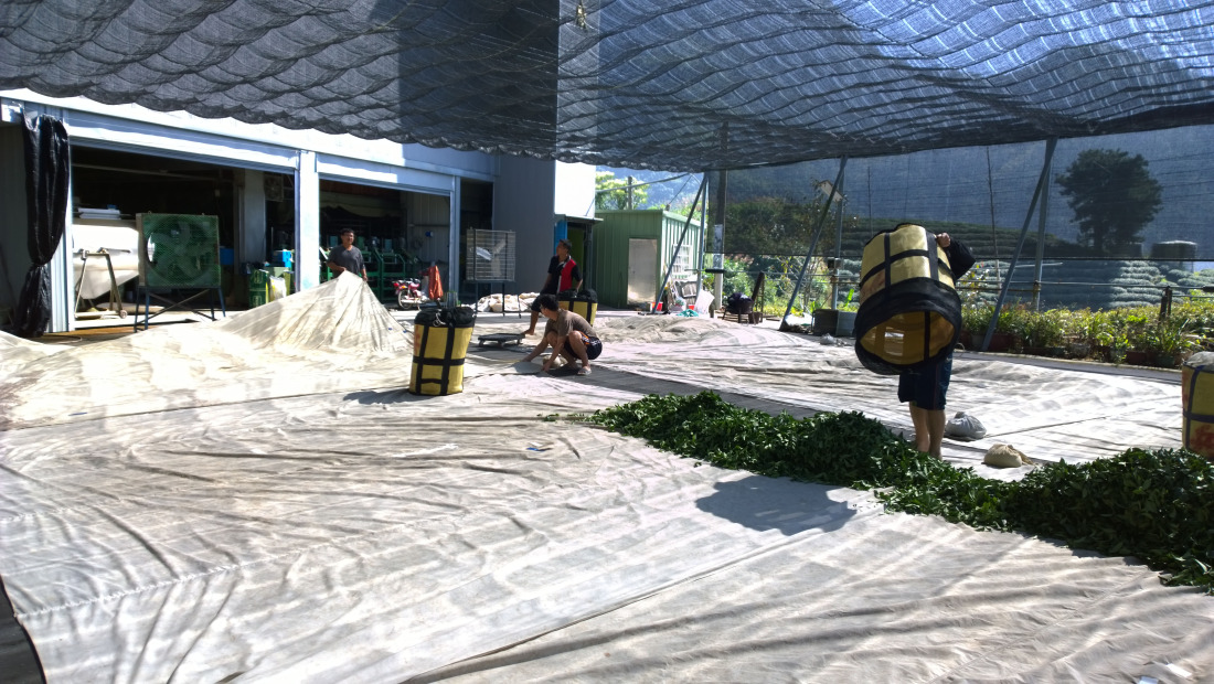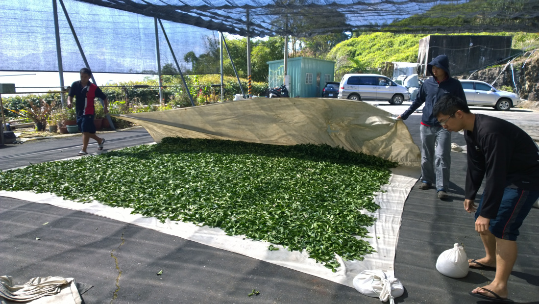 剛採下來的茶菁含有大量的水份,日光萎凋的結果會讓細胞內水分減少,葉溫提高,